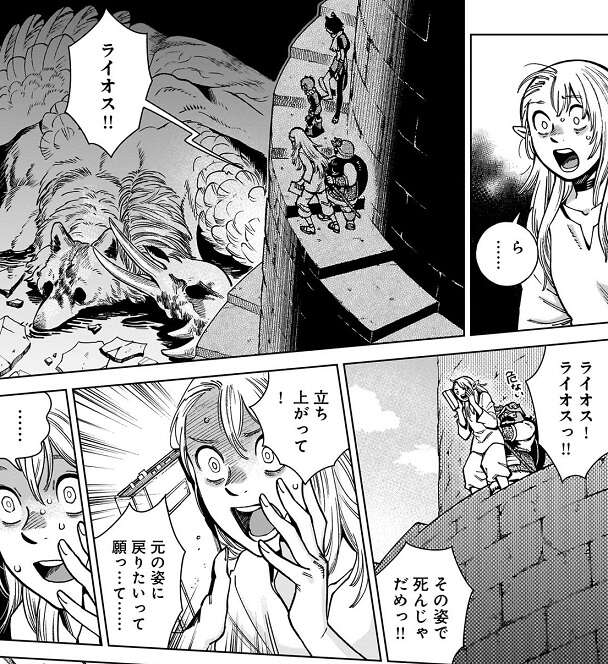 前回の記事はこちらです。魔物になったライオスは、翼獅子を食おうとします。