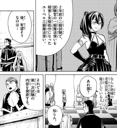 ユーベルも参加していますが、2年前の二級試験で試験官の一級魔法使いを殺害した事があったようで、問題児扱いされています。さらにフリーレンも参加していますが、フリーレンの事は知られておらず、あれ誰?と、言われています。