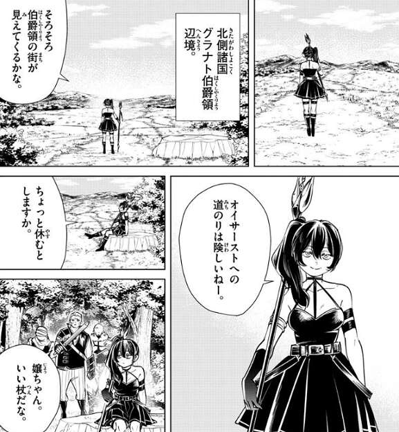 場面変わって、北側諸国 グラナト伯爵領辺境で、一人の魔法使いが道の途中で休憩しています。その時盗賊達が現れ、魔法使いに金目の物を全部おいていくように脅します。すると、エルフのモンク、クラフトが現れ盗賊の一人を一撃で倒します。