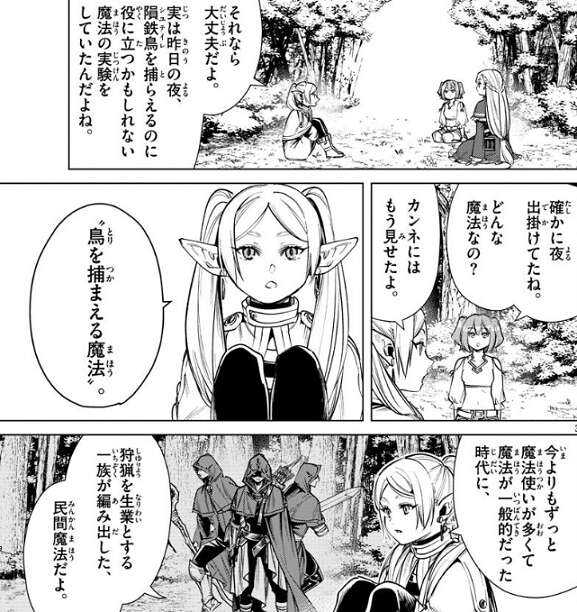 フリーレン達は隕鉄鳥を観察した結果を話し合い、フリーレンは作戦をラヴィーネとカンネに提案します。悪くない作戦のようですが、他のパーティー全員を敵に回してしまうことになります。魔力で凍らせてしまったら、魔力に敏感な隕鉄鳥は寄ってこないはずですが、どうやってフリーレン達は隕鉄鳥を捕まえるつもりでしょうか。