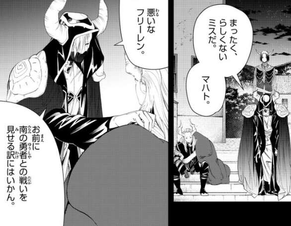 先週、マハトが南の勇者との戦いにどう関わっていたか見れそうと言いましたが、フリーレンに見られると魔族としてはまずいようで、マハトの南の勇者との戦いに関する記憶は消されてしまっていました。