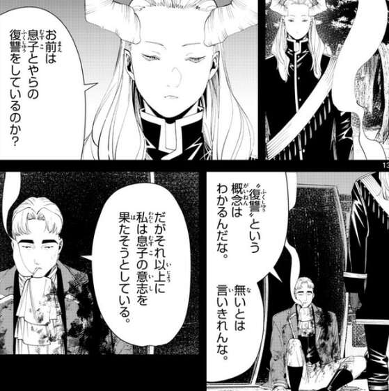グリュックの息子はバルコニーから飛び降りた事になってしたそうですが、年の離れた妹に誕生日プレゼントまで用意していて、グリュックは息子が自分でバルコニーから飛び降りたと信じていませんでした。当時のグリュックは、何故こんな残酷なことが平然と出来るか疑問でしたが、実際には配下に一言“殺せ”と命じれば、馬鹿にでも出来ることだと分かった、とマハトに言います。マハトはグリュックに、お前は息子とやらの復讐をしているのか?と、尋ねるとグリュックは、復讐はないとは言い切れないが、それ以上に私は息子の意思を果たそうとしてる、と答えます。