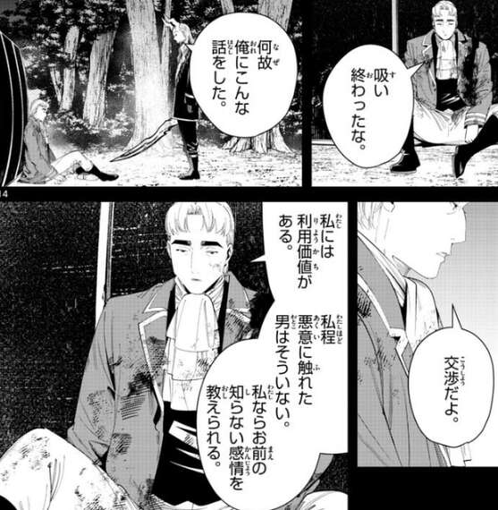 グリュックは、息子が目指した人があるべき世界を目指している、少なくとも私はそうだと思っている、そうであって欲しいと願っている、とマハトに話すと、何故俺にこんな話をした、とマハトは尋ねます。するとグリュックは交渉だよと言い、自分ほど悪意に触れた男はそういない、私ならお前に知らない感情を教えられる、とマハトに交渉しようとします。