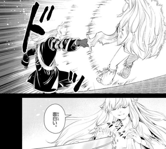 マハトは人を殺す魔法(ゾルトラーク)でゼーリエを攻撃しますが、ゼーリエはマハトの魔法を防ぐと、魔法でマハトをさらに攻撃します。しかし、マハトも防御魔法でゼーリエの魔法攻撃を防ぎます。