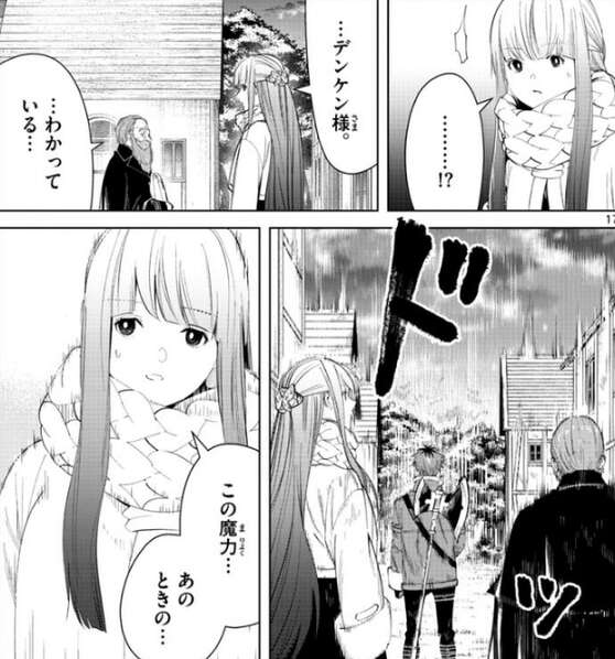 大結界が破壊されようとしていた頃、フェルンとデンケンも大結界の異常を察知します。フェルンはソリテールの魔力に気付き、さらにこの魔力が二か月前に一瞬探知した強大な魔力と同じものだと気付きます。
