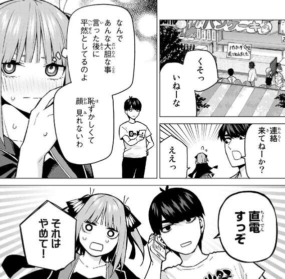 【ネタバレ】五等分の花嫁 104話 『最後の祭りが二乃の場合②』のネタバレ、感想