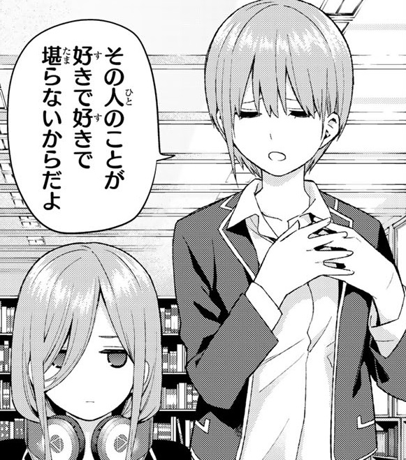 そこに一花が登場し「その人のことが好きで好きで堪らないからだよ」と答えます。
