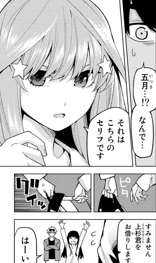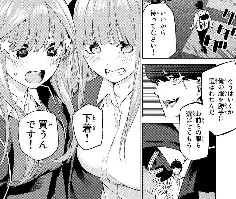 しかし風太郎も五つ子の服(厳密には服ではない)をコーディネートしようとします。だが服ではなく…。