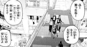 五つ子の買い物を続けようとしますが、五月からここで待つように言われますが風太郎は無視してついて行こうとします。