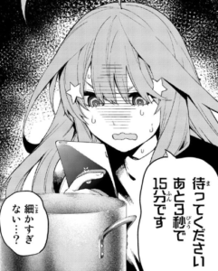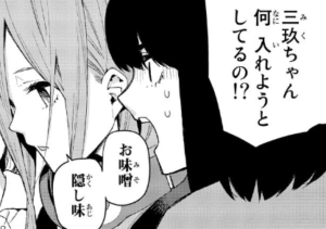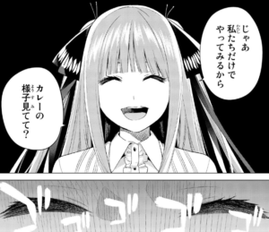 しかし二乃の班の男子がご飯を焦がしてしまった為、二乃は激おこです。