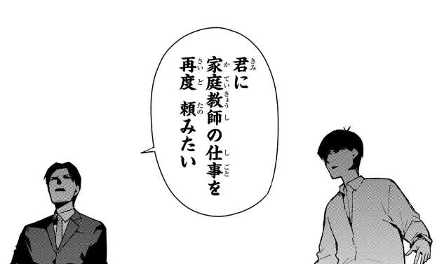 そして風太郎には再び五つ子たちの家庭教師の仕事を頼みたいと言います。驚く風太郎ですが、言われなくてもやるつもりだった上に、再び給料が貰えるなら願ったり叶ったりと引き受けると伝えます。
