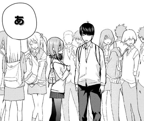 しかし、逆に三玖から謝られてしまう一花です。そこに風太郎が三十分後に、二階の大広間に集合するように連絡事項を伝えに来ます。三玖は風太郎の顔を見るとトイレに隠れてしまいます。五つ子たちの雰囲気から、揉めていることを察した風太郎は、話してみるように言います。