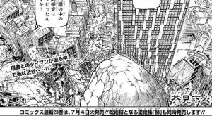 伏黒恵の体を乗っ取って宿儺は、さらに万を受肉した伏黒の姉・津美紀を殺害し、伏黒の完全な支配を果たします。一方、ついに獄門彊の封印が解放され五条悟が復活します。そして12月24日に新宿で史上最強の術師・両面宿儺と、現代最強の術師・五条悟の最終決戦が幕を開けます。