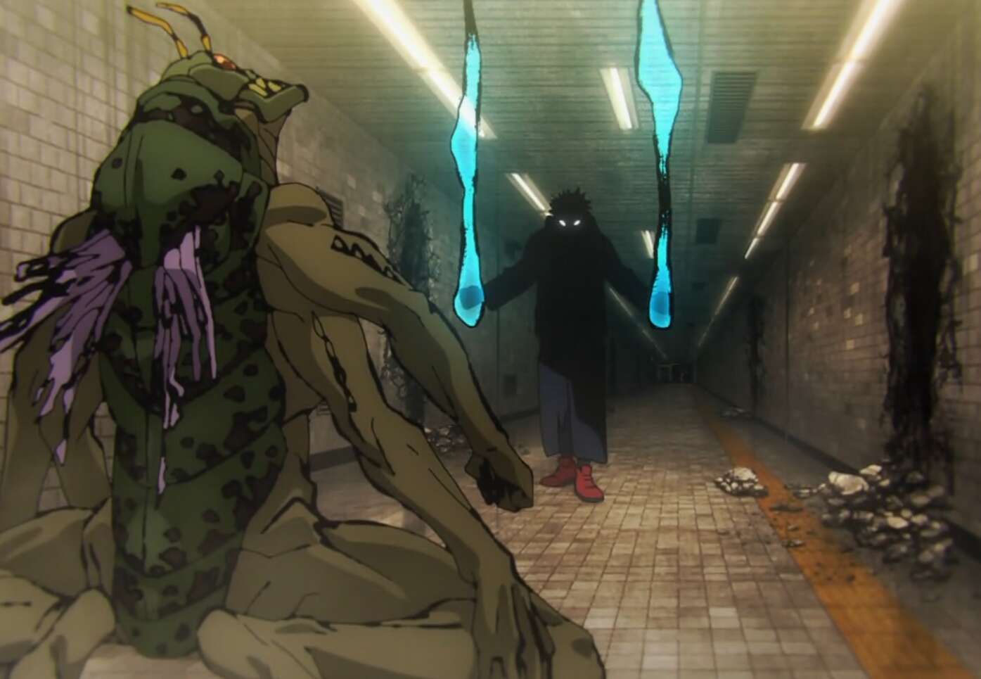 虎杖は地下2階で人語を解する呪霊と遭遇します。呪霊は蝗GUYというバッタの呪霊で、“帳”の基となる呪符が巻かれた杭を守っていました。蝗GUYという名前は真人につけてもらった名前で、自分を人間よりも優れていると思っていました。