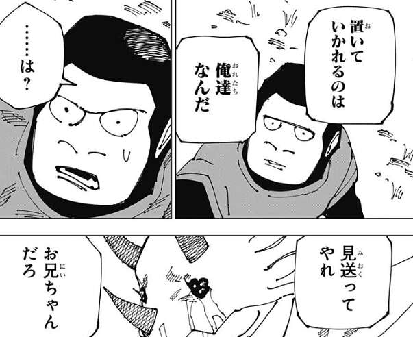 その後、寝ているお兄ちゃんのゴリラは、父ちゃんと呼ばれる夜蛾正道に似た生き物に起こされます。そして、パンダとはお別れだ、とお兄ちゃんのゴリラは父ちゃんに突然、言われます。