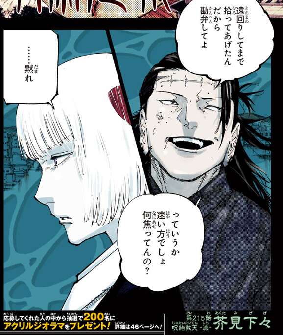 週刊少年ジャンプに掲載されている、呪術廻戦 第215話のネタバレ、感想です。