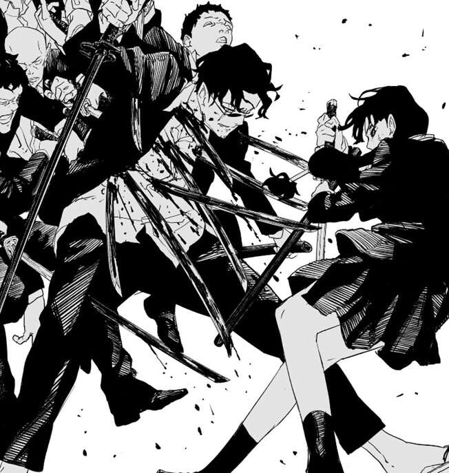 昼彦はチヒロに斬りかかりながら、もう本気出すしかねえな!!千鉱!!来い!!と、チヒロに本気を出すように迫りますが、…なぜそこまであの剣豪(ひと)を…侮れる…!!と、昼彦に答えます。一方、チヒロの後ろからは大量の黒い羽根が、チヒロと昼彦の方に迫ってきていました。