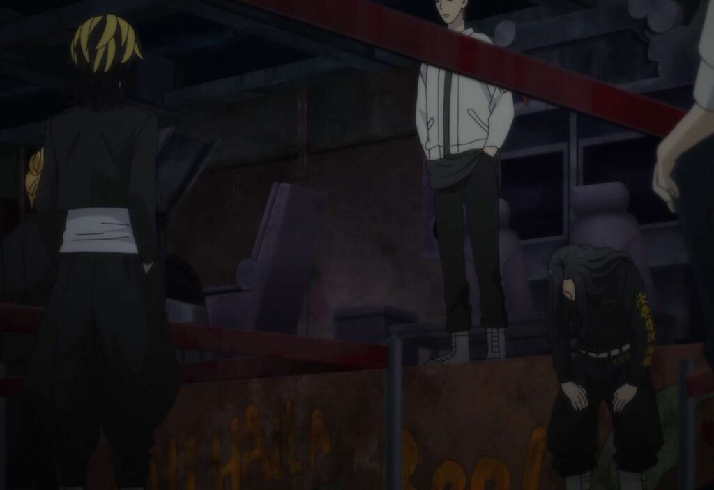 芭流覇羅のアジトに着いた武道が見たのは、自分の一番の腹心、壱番隊 副隊長を場地が一方的に殴って半殺しにしている場面でした。場地は東卍を裏切って芭流覇羅入りする“踏み絵”として、自分について来てくれていた腹心を半殺しにしていました。