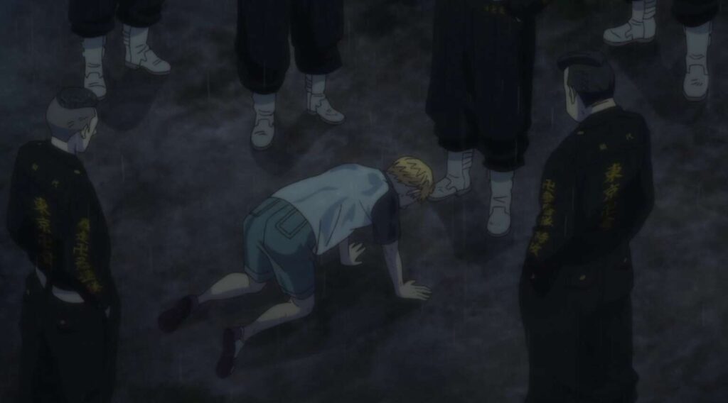 放置されているところをヒナに見つけてもらいますが、武道は自分が情けなくなり、ダメな自分を卑下します。ヒナにみっともないところを見られたくないからと、一人にさせてほしいと言います。しかしヒナは武道にキスをして、ドラケン君でもマイキー君でもない、武道君は武道君だと言います。そして、人の為に思いっきり泣けて、人の為に思いっきり悔しがれる武道君だよ、こんなかっこいいヤツ、他にいないよ、とヒナは武道を励まします。