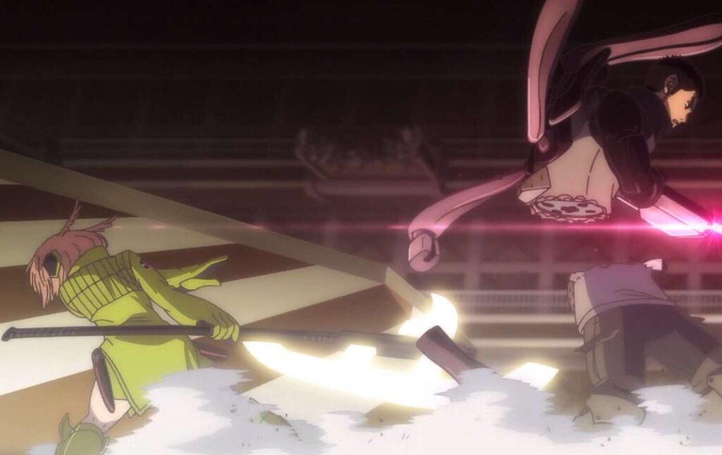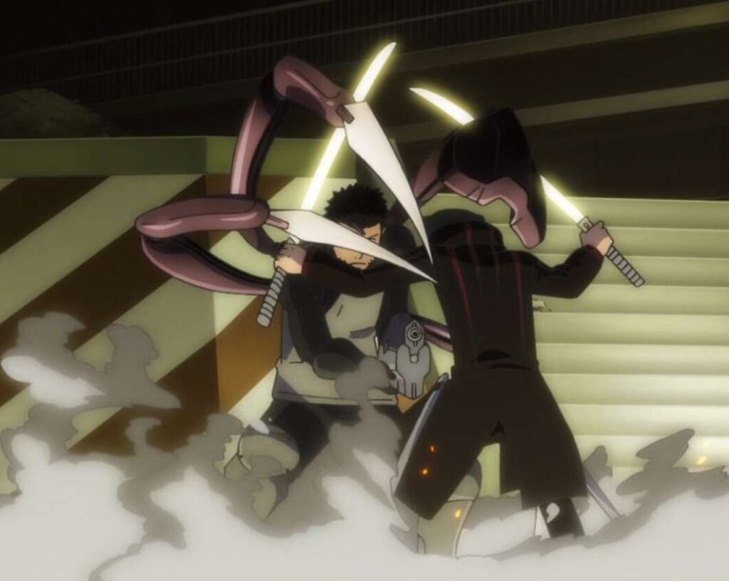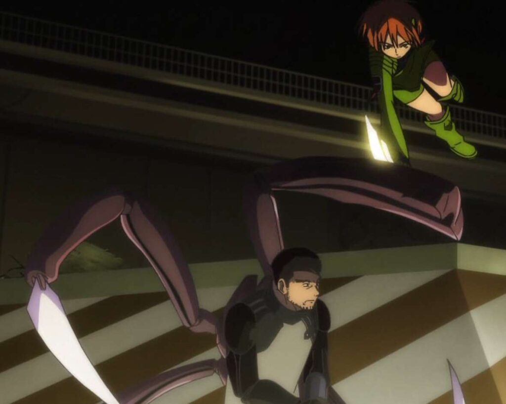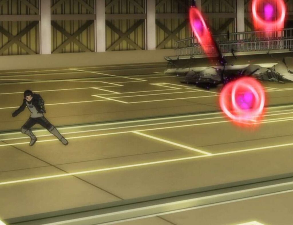 ラタリコフは村上を攻撃しようとしますが、風間に踊り手(デスピニス)の軌道を読まれ始めます。風間の反撃がどんどん鋭くなってきますが、ラタリコフはガトリンから、村上を引き剥がすように指示があったため、踊り手(デスピニス)で村上を狙います。