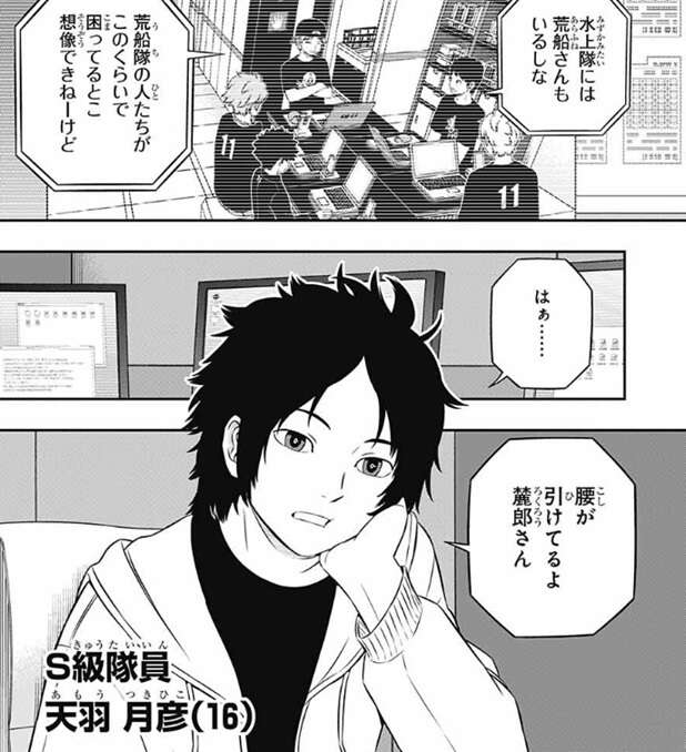 若村が昨日の事を引きずっていない事にモニター室の隊員たちは安心し、片桐隊の一条雪丸は若村にプラス評価をします。しかし天羽は、まだ分からないと言い、内心うじうじしてんじゃないの?と、相変わらず若村には厳しいようで、迅から暖かく見守ろうよと言われます。