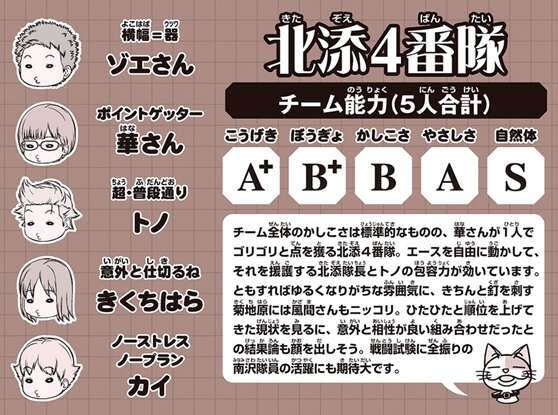 諏訪隊は特殊シミュの順位が1位、5日目単日でも1位と絶好調で、総合順位は5日目で2位に躍進します。絶好調の諏訪隊ですが、特殊シミュ2日目は特殊シミュに取り組む時間を軽くして時間をかけないと諏訪はメンバーに指示します。昨日、今日とシミュでバカ勝ちしている諏訪隊は、明日は他のチームに対策されて勝ちにくくなると諏訪は予想、それよりは分担課題に時間を回してそちらで得点を取る方針にします。