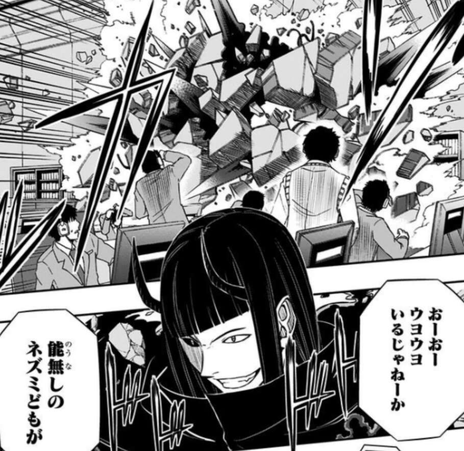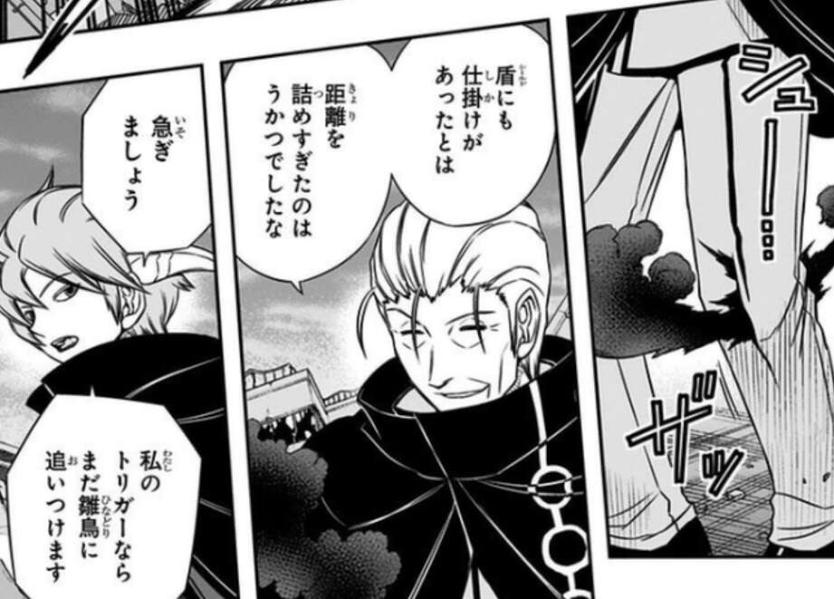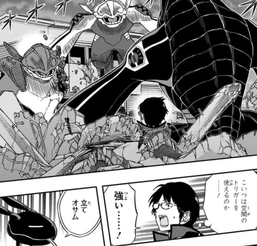 ヴィザ、ヒュースの分断に成功しますが、ヒュースと戦う迅は地下道での戦いでヒュースのトリガー「蝶の楯(ランビリス)」に苦戦します。保護色により、トリガー「蝶の楯(ランビリス)」が見えず、さらに「磁力」に「反射」の能力もありトリガー「蝶の楯(ランビリス)」に捕まってしまいます。