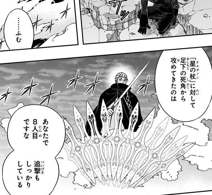 空閑はヴィザ相手に勝ち目は薄いですが、逃げるわけにはいかないと空閑はまず相手を奇襲するため、「響」印を使い下から攻撃します。しかし、ヴィザは「星の杖」に対して足元からの死角から攻撃してくるのは予想通りのようで、全くダメージを受けていません。